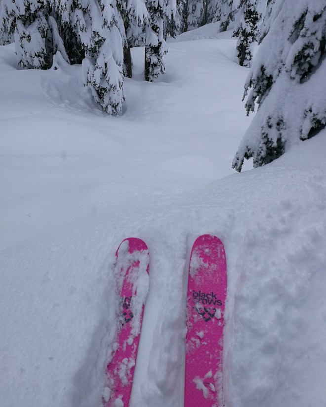 Basically, I had a big list of doubts. A lot of reasons I might not like the ski. So how do we make a choice when the rational isn’t clear? Read reviews and talk to friends. The consensus amongst my friends was that camber isn’t bad – I may even like it! I’m a good skier and I’d have more fun being in control of a stiffer ski. A friend also owned a pair already, she loved them and reassured me that they’d turn fine in the trees.